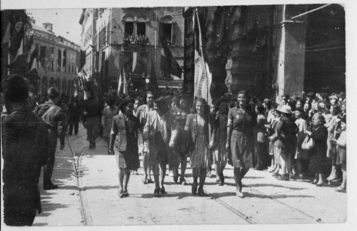 Il 30 aprile 1945 le formazioni partigiane modenesi sfilano in centro a Modena per celebrare la vittoria.